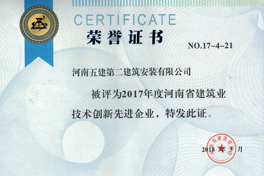 公司榮獲 2017年度“河南省建筑業(yè)前二十強(qiáng)企業(yè)”、“河南省建筑業(yè)先進(jìn)企業(yè)”等多項(xiàng)榮譽(yù)